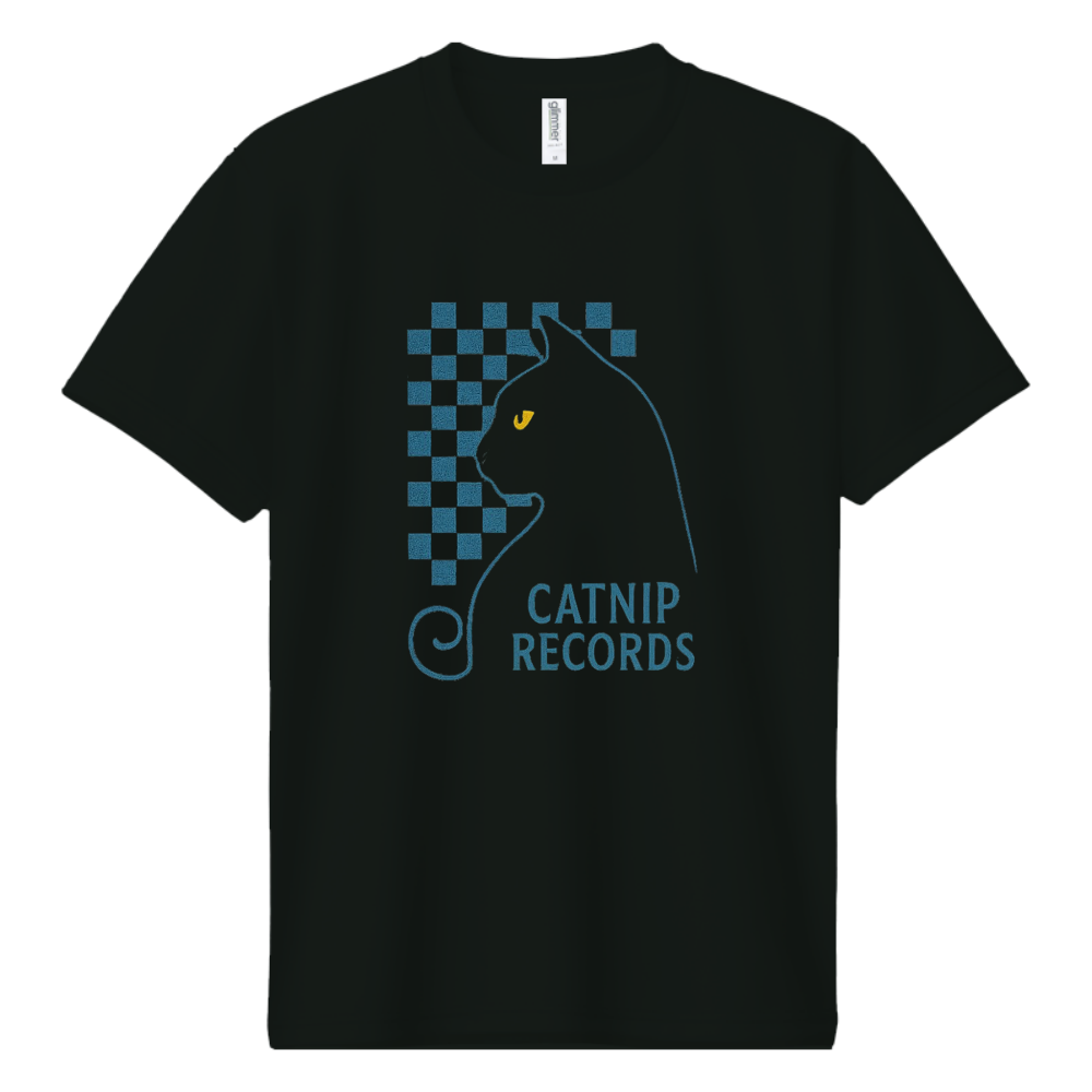 CATNIP RECORDS チェッカー黒猫♩ ドライTシャツ